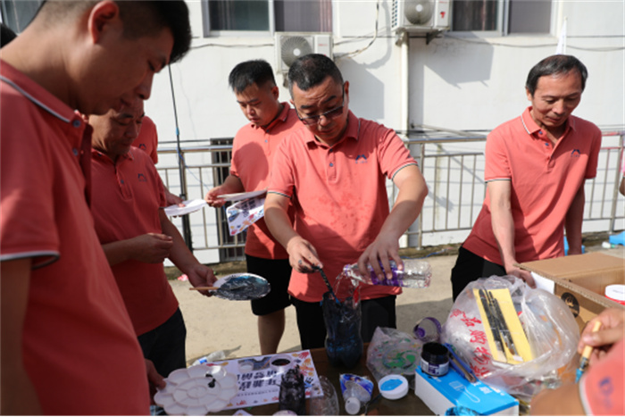 在激烈的團隊競賽后,活動來到共繪藍圖環(huán)節(jié),8個小隊分工協(xié)作,在納斯卡巨畫上描繪了“十年兼程,筑夢前行”的活動主題圖案。