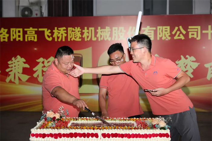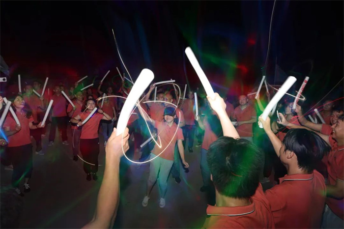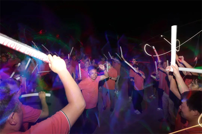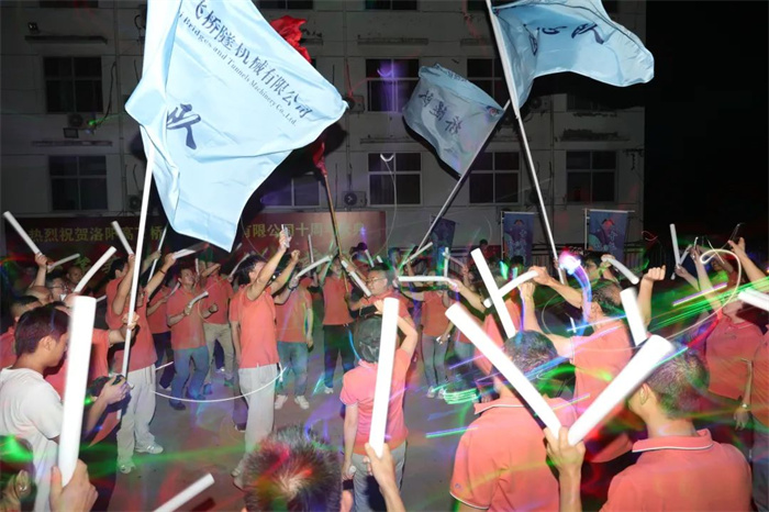 晚上的篝火晚會,公司三位領導共切高飛股份十周年生日蛋糕,伴隨著歡快的生日歌及100發(fā)加特林的同時燃放,點燃了整場晚會。激情的音樂,跳動的旋律,使得大家都忍不住的律動起來,共同慶祝了這個美好的時刻。